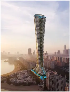 Iconic seashell-inspired tower (300+ meters, 71–76 floors)